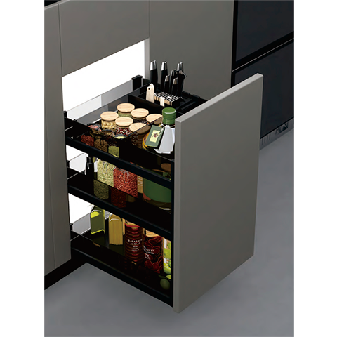 ▪ Finition : Aluminium + verre trempé.▪se compose d’un cadre panier de 3 étages avec 2 coulisses invisible a sortie totale.